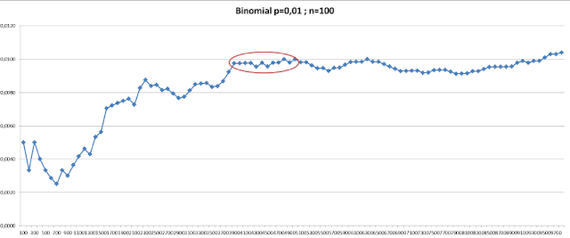 In this case we would estimate p ≈ 0,01 when the population has a p of 0,01.